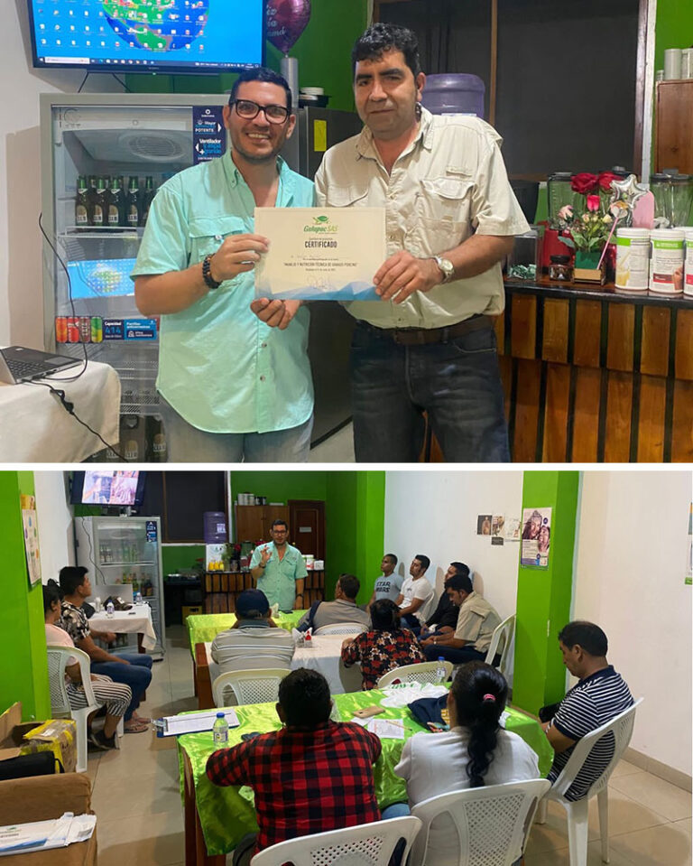 La División Salud Animal organizó una charla sobre el manejo técnico y nutricional de cerdos para clientes de nuestra agencia Galapac. Se les otorgó una certificación a los asistentes por su participación de esta charla.