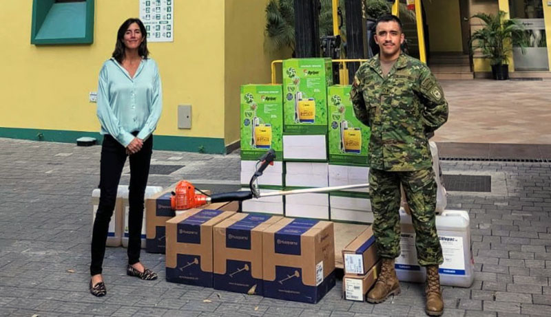 En el constante apoyo a la comunidad, la Dirección de Responsabilidad Social Corporativa donó cuatro desbrozadoras, bombas fumigadoras y glifosato para la Brigada de Infantería 5to Guayas del Ejército.