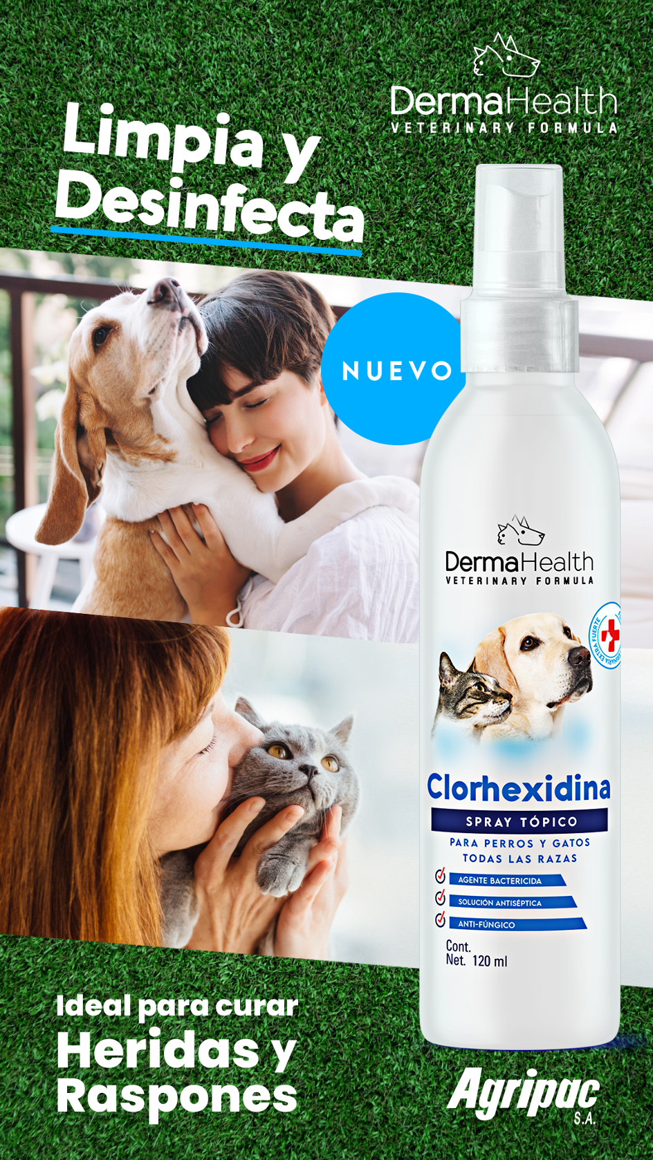 La División Consumo sigue innovando en productos de alta calidad para el uso de las mascotas, bajo su línea Dermahealthnace SPRAY CLORHEXINA, que ayuda a limpiar y desinfectar las patitas de nuestras mascotas, también es usado para curar heridas y raspones. Con esto sigue incrementando y dando mayores alternativas a nuestros clientes.