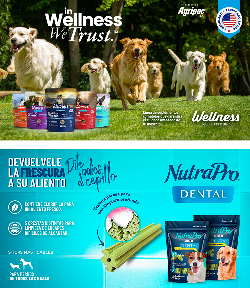 La División Consumo realizó el lanzamiento de nuevos productos. En la categoría Super Premium con la marca Wellness, MULTI-VITAMINAS para perros formuladas y fabricadas en USA, estas son pastillas masticables de alta palatabilidad y disponen de cinco variedades.