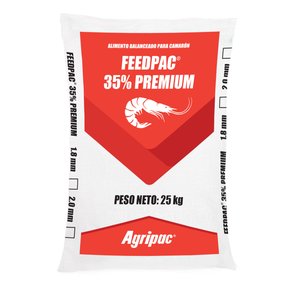 Alimento balanceado 35% Premium, puede suministrarse para camarones adultos y juveniles.