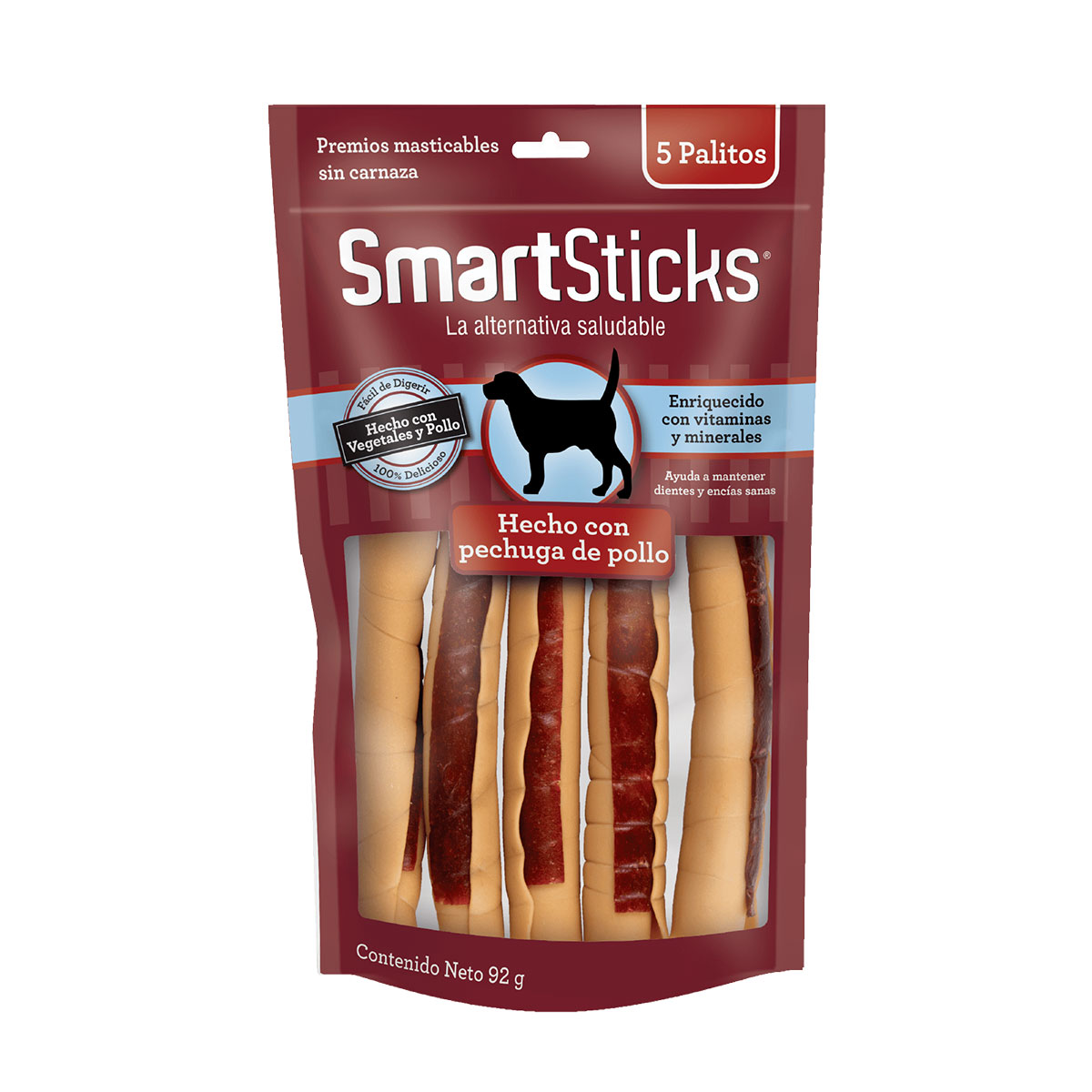 5 piezas. Hecho a base de pollo y vegetales que combinan sabor y diversión en forma de palito. Son masticables que no contienen carnaza por lo que ayudará a tu mascota a mantener dientes y encías saludables. Enriquecido con vitaminas y minerales, sin colorantes ni